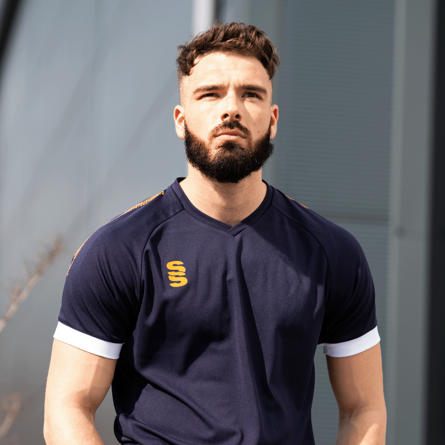 The Fuse Training T-shirt is made with performance polyester pique. A French seam shoulder construction adds extra comfort and durability. It features forward seams with contrasting coloured insert, and a contrast back yoke. To finish, our Surridge SS logo is printed on the right chest. It comes available with dual print options on the shoulder.