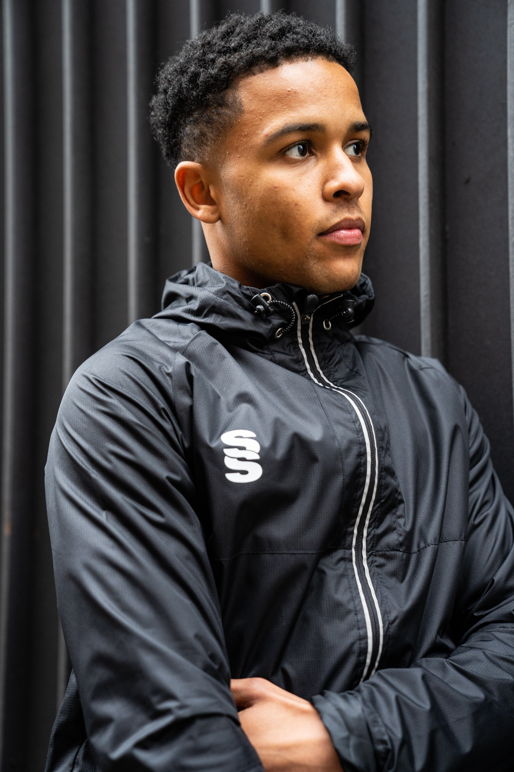 The Dual Full Zip Training Jacket is made with a mesh lined polyester, with a wax coated outer shell making it light and fully waterproof. It comes with reflective water resistant zip detail and 2 zip pockets, with the hood having adjustable toggles. It features underarm vents to stay breathable but warm, making it perfect for training when the weather is damp. To finish, our Surridge SS logo is situated on the right chest.