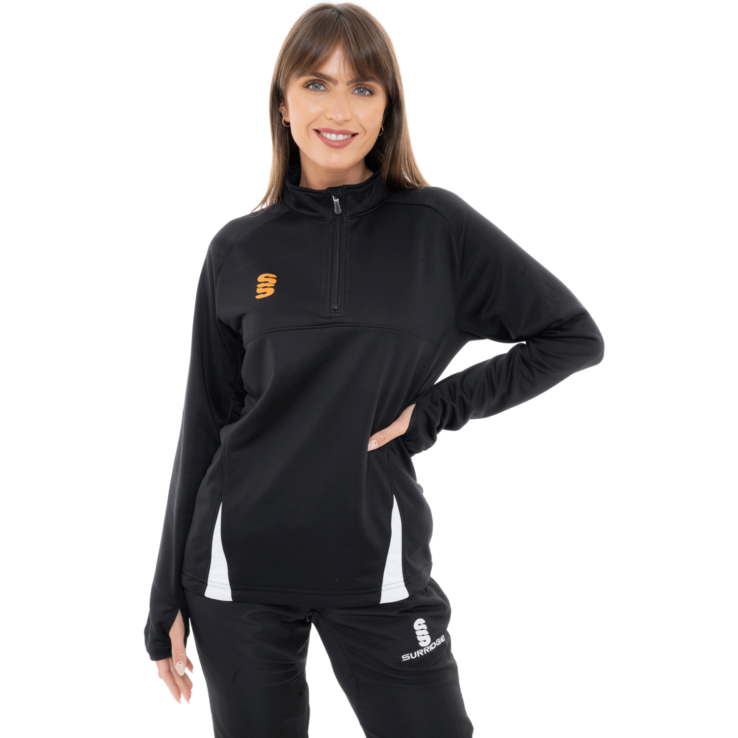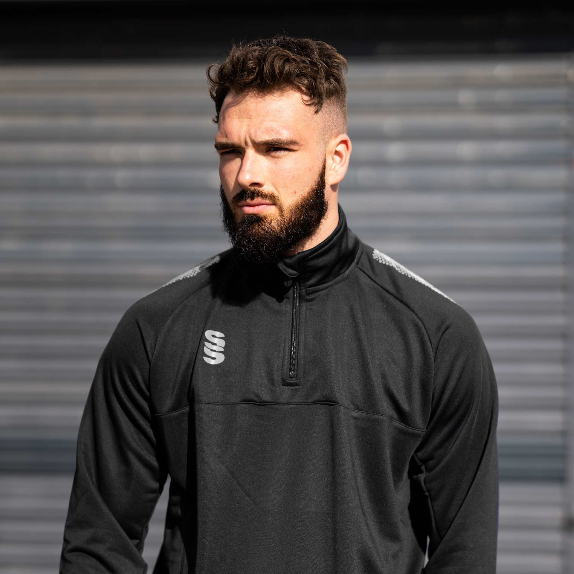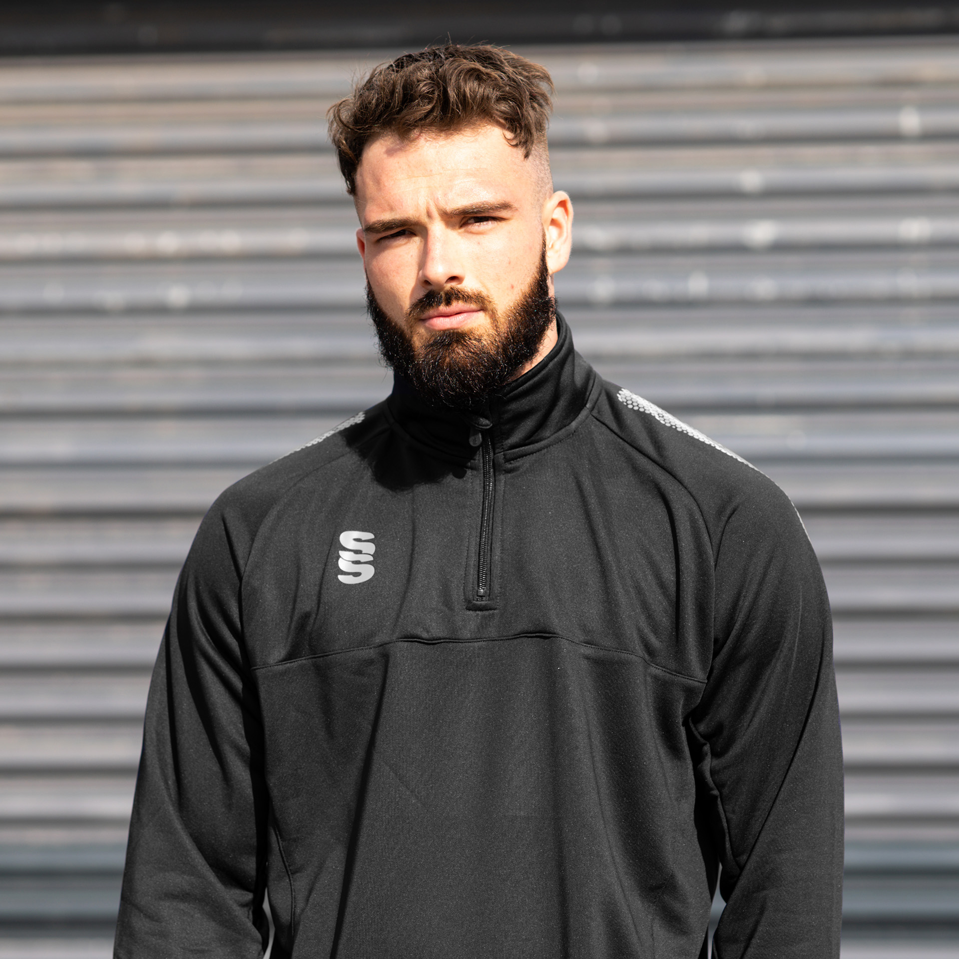 The Fuse Performance Top is made from a heavy brushed French Terry material to give warmth and comfort. With a 1/4 zip neck detail it's made to look modern but add breathability, along with a reflective zip detailing. It comes with an open hem with draw cords, and binding on the sleeve ends with thumb holes. With our choice of dual print trims, you can personalise to your liking. To finish, our Surridge SS logo is printed on to the right chest.